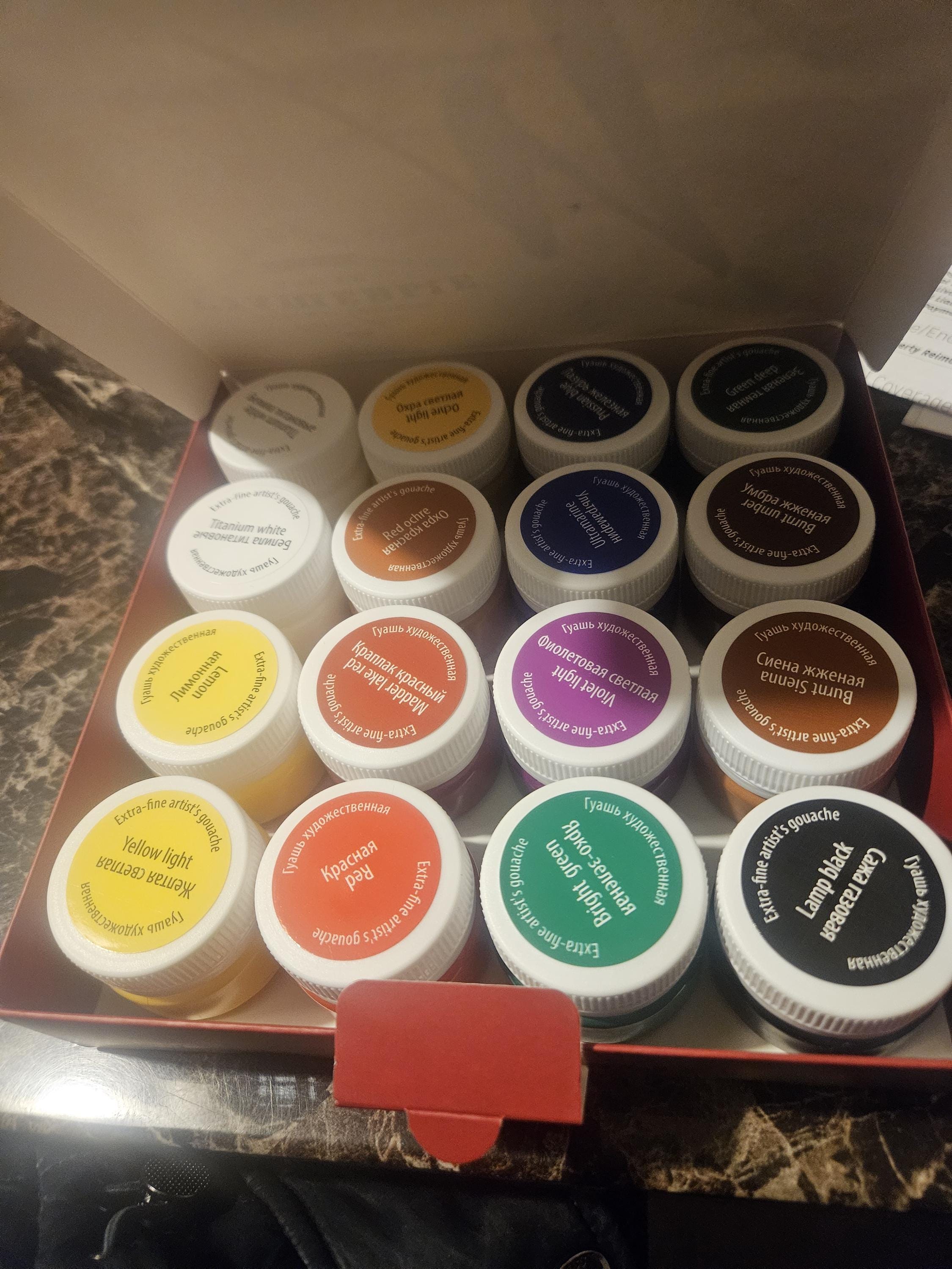 St.Petersburg MASTER CLASS Gouache Paint Set (16x20ml jars). Made in Russia.